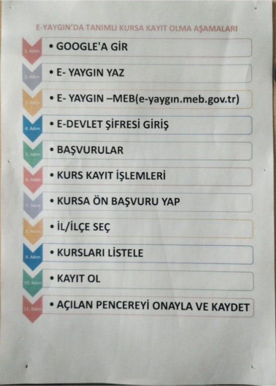 E-YAYGINDA TANIMLI KURSA KAYIT OLMA AŞAMALARI